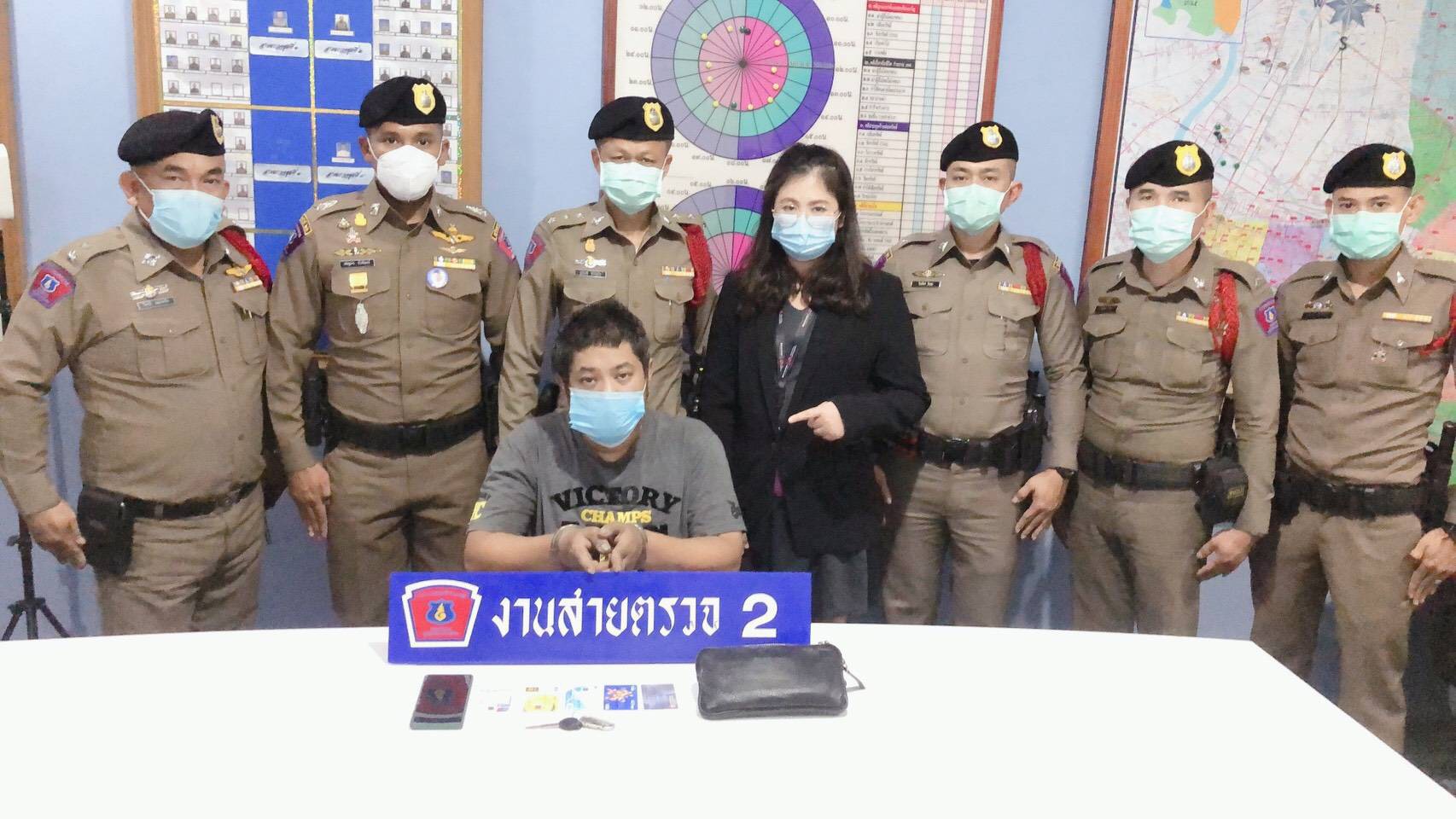 จนเวลาประมาณ 19.45 น. ของวันเดียวกัน สามารถจับกุมตัวผู้ต้องหาผู้ก่อเหตุได้พร้อมของกลาง สอบถามผู้ต้องรับสารภาพตลอดข้อกล่าวจึงได้ให้ผู้เสียหายชี้ยืนยันตัวผู้ต้องหา พร้อมทั้งยืนยันทรัพย์สินที่ถูกผู้ต้องหาลักไป เจ้าหน้าที่ตำรวจชุดจึงได้แจ้งข้อกล่าวหาว่า“วิ่งราวทรัพย์ในเวลากลางคืนโดยใช้ยานพาหนะ” และควบคุมตัวพร้อมยึดของกลางนำส่งพนักงานสอบสวน สน.ทุ่งมหาเมฆ ดำเนินคดีตามกฎหมาย