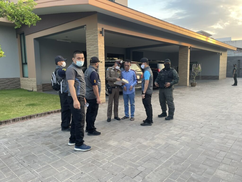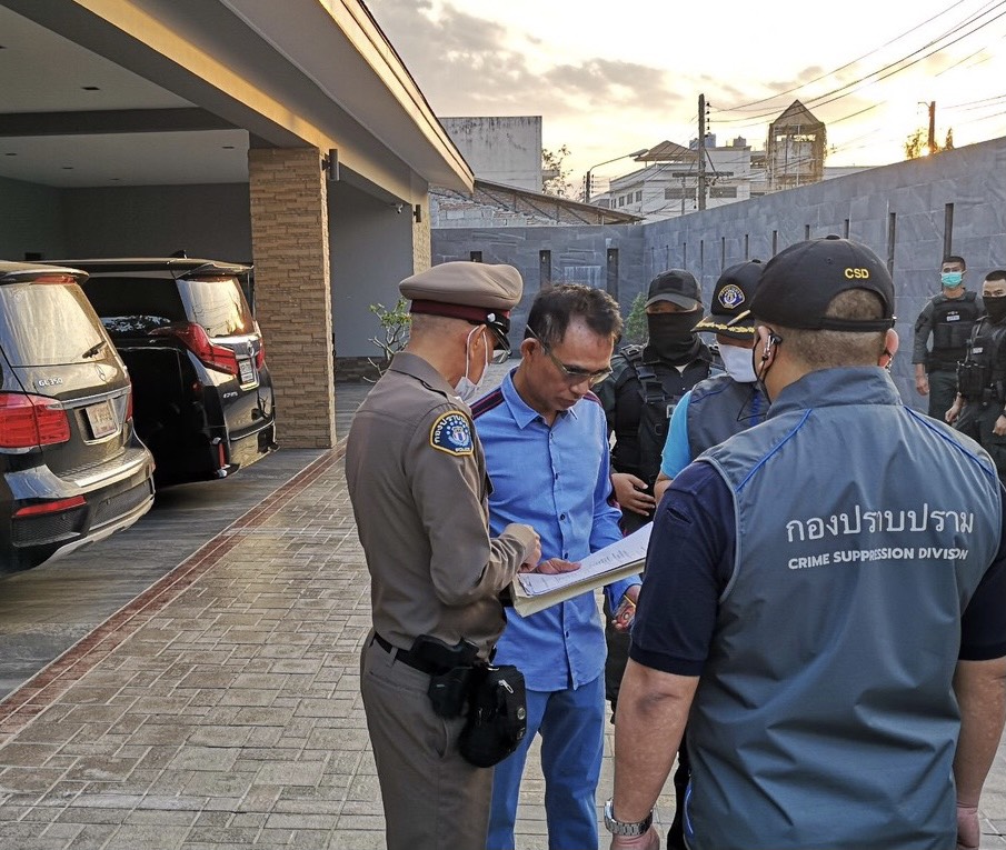 ด้าน พล.ต.ต.ยิ่งยศ เทพจำนงค์ โฆษกสำนักงานตำรวจแห่งชาติเปิดเผยว่า เช้าวันที่ 11 กุมภาพันธ์ 2564 ชุดปฏิบัติการพิเศษตำรวจภูธรภาค 2 นำโดย พล.ต.ท.รอย อิงคไพโรจน์ ผู้ช่วย ผบ.ตร.รรท.ผบช.ภ.2 , พล.ต.ต.ฐิติ แสงสว่าง รอง ผบช.ภ.1 รรท.ผบก.ภ.จว.ชลบุรี และ ชุดปฏิบัติการพิเศษหนุมาน กองบังคับการปราบปราม นำโดย พล.ต.ต.จิรภพ ภูริเดช รอง ผบช.ก. นำกำลังเจ้าหน้าที่ตำรวจเข้าปฏิบัติการตรวจค้นสถานที่ต่าง ๆ ใน จว.ระยอง พร้อมกัน 10 จุด ซึ่งผลการตรวจค้นบ้านเลขที่ 158/25 ต.เนินพระ อ.เมืองระยอง จ.ระยอง ตามหมายค้นศาลอาญาที่ 203/2564 ลงวันที่ 10 ก.พ.2564
