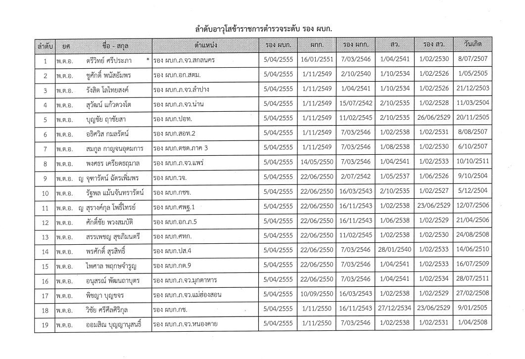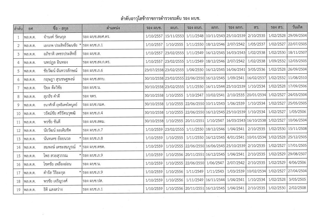 รอง ผบก. อาวุโส 3 อันดับแรก ได้แก่ 1. พ.ต.อ.ตรีวิทย์ ศรีประภา รอง ผบก.ภ.จว.สกลนคร เกษียณราชการ ปี 2567 2. พ.ต.อ.ชูศักดิ์ พนัสอัมพร รอง ผบก.อก.สตม. เกษียณอายุราชการ ปี 2565 และ 3. พ.ต.อ.รังสิต โลไทยสงค์ รอง ผบก.ภ.จว.ลำปาง เกษียณราชการ ปี 2564
