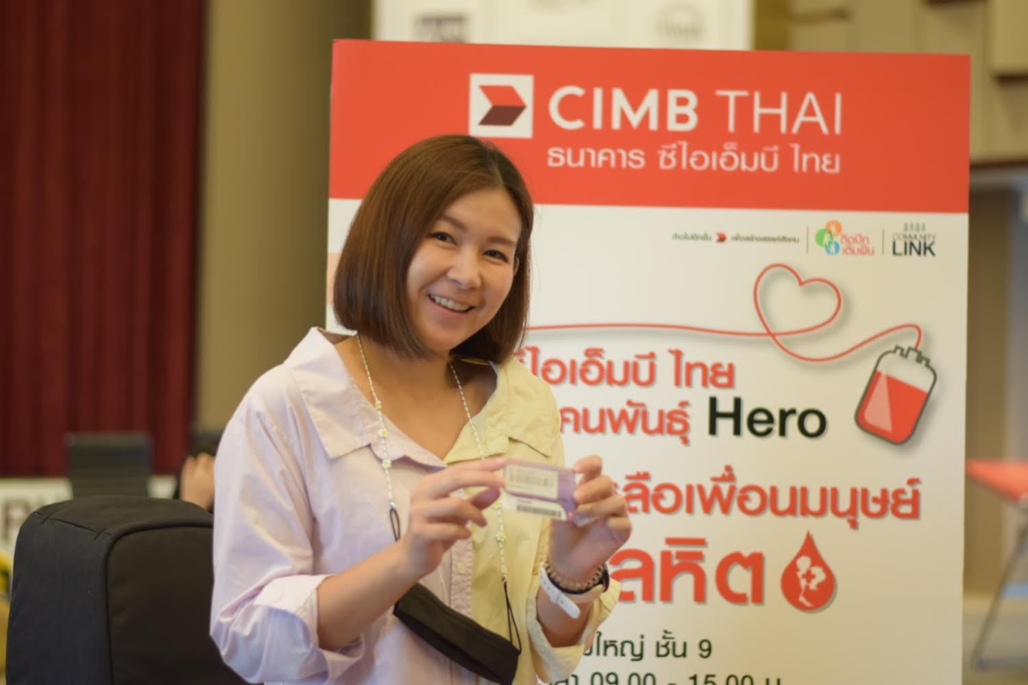 อนึ่งธนาคารซีไอเอ็มบีไทยร่วมกับศูนย์บริการโลหิตแห่งชาติสภากาชาดไทยจัดกิจกรรมบริจาคโลหิตเป็นประจำทุกไตรมาสณอาคารสำนักงานใหญ่ถนนหลังสวนต่อเนื่องกว่า 10 ปีแม้ช่วงโควิดระบาดธนาคารยังคงเดินหน้าจัดกิจกรรมด้วยตระหนักถึงภาวะวิกฤติที่ศูนย์บริการโลหิตกำลังขาดแคลนเลือดในขณะที่ปริมาณการใช้โลหิตยังเท่าเดิมโดยจัดเป็นการภายในเฉพาะเพื่อนพนักงานธนาคารบริษัทในเครือและบริษัทในกลุ่มซีไอเอ็มบีร่วมบริจาคโลหิตณอาคารสำนักงานใหญ่ถนนหลังสวนโดยใช้งมาตรการรักษาความปลอดภัยที่คุมเข้มเพื่อป้องกันการแพร่กระจายของโรคระบาดโควิด-19 ทั้งการให้พนักงานเลือกเวลาบริจาคโลหิตเพื่อลดความแออัดของพื้นที่การรักษาระยะห่างระบุคคลการเช็ดทำความสะอาดด้วยแอลกอฮอล์ทุกครั้งเมื่อเปลี่ยนตัวผู้บริจาคโลหิตการตรวจวัดอุณหภูมิทั้งเจ้าหน้าที่สภากาชาดไทยและผู้ร่วมบริจาคโลหิตทุกท่านรวมถึงการบริการเจลแอลกอฮอล์ตามจุดต่างๆในพื้นที่อย่างทั่วถึงเพื่อสร้างความมั่นใจให้ผู้ร่วมบริจาคโลหิตทุกคน