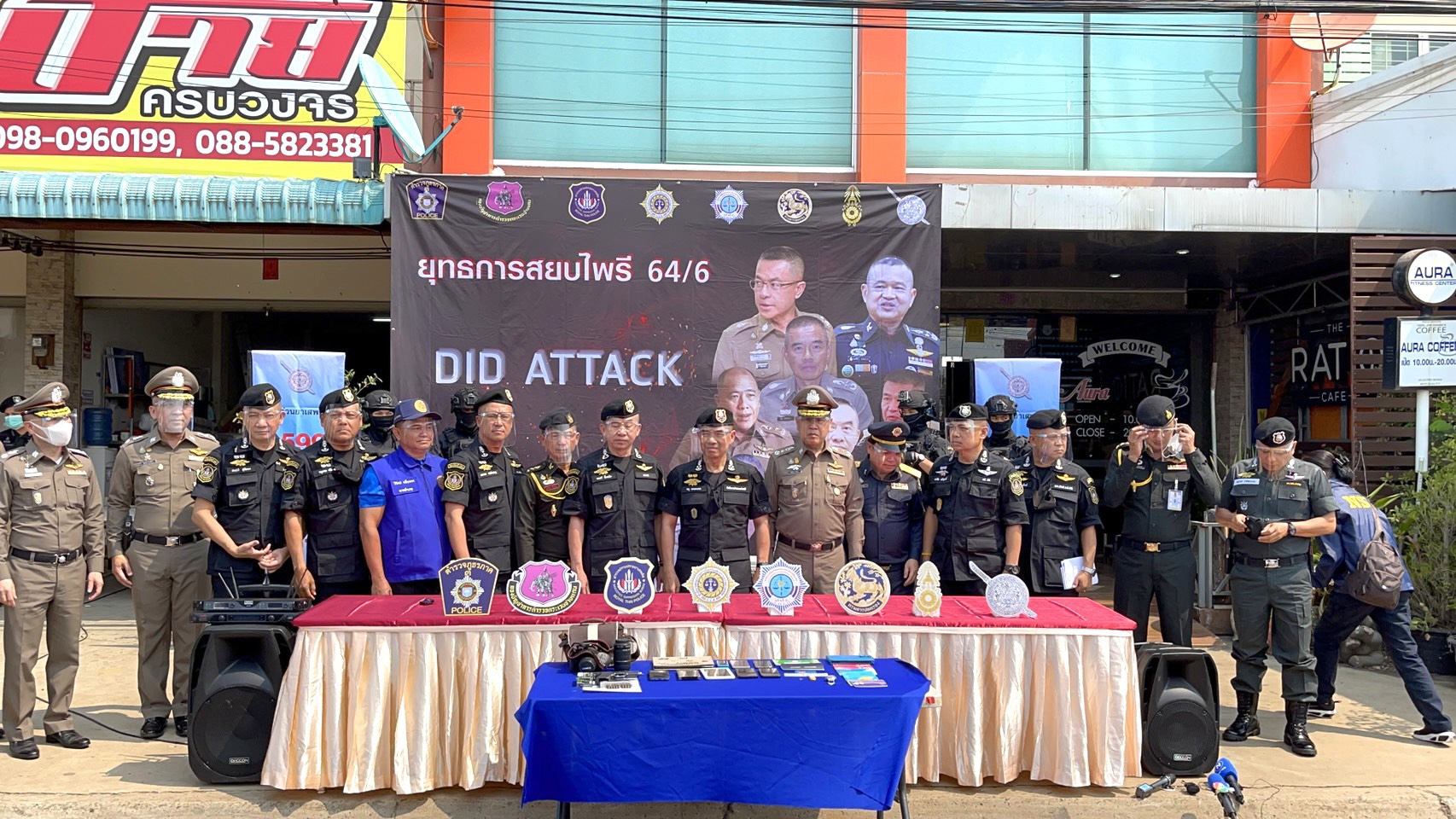 วันที่ 10 มีนาคม 2564 ที่ อ.หนองกี่ จ.บุรีรัมย์ พล.ต.อ.มนู เมฆหมอก รอง ผบ.ตร. (ปป) แถลงว่า จากที่ พล.ต.อ.สุวัฒน์ แจ้งยอดสุข ผู้บัญชาการตำรวจแห่งชาติ (ผบ.ตร.) ได้มอบนโยบาย กำชับ ให้ตน พร้อมด้วย พล.ต.ท.ชินภัทร สารสิน ผู้ช่วย ผบ.ตร. (ปป 6) ประสานกับ พล.อ.วรเกียรติ รัตนานนท์ เลขาธิการ กอ.รมน., พล.ท.อภิเชษฐ์ ซื่อสัตย์ แม่ทัพภาคที่ 3 และ ผอ.ศอ.ปส.ชน., และ นายวิชัย ไชยมงคล เลขาธิการ ป.ป.ส. โดยมี พล.ต.ท.มนตรี ยิ้มแย้ม ผู้บัญชาการตำรวจปราบปรามยาเสพติด (ผบช.ปส.) ได้ร่วมกันอำนวยการสืบสวนเร่งรัดผู้ใต้บังคับบัญชาเพื่อปฏิบัติการสืบสวนปราบปรามยาเสพติด ตามนโยบายรัฐบาล โดยกำหนดแผนยุทธการสยบไพรี 64/6 “DID ATTACK” ขึ้น พร้อมทั้งได้ จับกุมบุคคลตามหมายจับ 5 ราย ประกอบด้วย ผู้ต้องหาที่ 1 นายพนม ไชยันโต ที่อยู่ 350 ม.15 ต.พันดอน อ.กุมภวาปี จว.อุดรธานี หมายจับที่ 179/64 ลง 8 มี.ค.64 ข้อหา “ร่วมกันมียาเสพติดให้โทษประเภท 1 (ยาบ้าหรือเมทแอมเฟตามีน) ซึ่งคำนวณเป็นสารบริสุทธิ์เกิน 20 กรัมขึ้นไป ไว้ในครอบครองเพื่อจำหน่ายโดยไม่ได้รับอนุญาต, สมคบกันตั้งแต่สองคนขึ้นไปเพื่อกระทำความผิดเกี่ยวกับยาเสพติดและได้กระทำความผิดเกี่ยวกับยาเสพติดเพราะเหตุ ที่ได้มีการสมคบกัน”