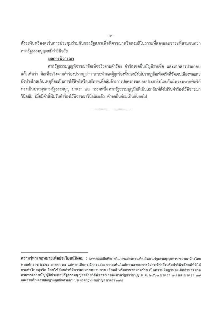 โดยผลการพิจารณา คดีนี้เป็นคดีที่ไม่มีผู้ถูกร้อง จึงไม่มีการออกนั่งอ่านคำวินิจฉัยตามพระราชบัญญัติประกอบรัฐธรรมนูญ (พ.ร.ป.) ว่าด้วยวิธีพิจารณาของศาลรัฐธรรมนูญ พ.ศ.2561 มาตรา 76 วรรคสาม ที่ให้ถือว่าวันที่ศาลลงมติ ซึ่งเป็นวันที่ปรากฏในคำวินิจฉัยเป็นวันอ่าน