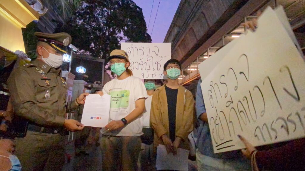 เมื่อเวลา 18.40 น. วันที่ 19 มีนาคม 2564 ที่สำนักงานตำรวจแห่งชาติ(ตร.) น.ส.เบนจา อะปัญ นักศึกษามหาวิทยาลัยธรรมศาสตร์ (มธ.) แนวร่วมผู้ชุมนุมกลุ่มราษฎร เดินทางมายื่นจดหมายเปิดผนึกจดหมายเปิดผนึกจากนักเรียนและนักศึกษา และอ่านแถลงการณ์หน้าป้าย ตร. ให้ตำรวจช่วยอำนวยความสะดวกการจราจรในเช้าวันพรุ่งนี้ (20 มี.ค.) ซึ่งจะมีการจัดการสอบ GAT/PAT เนื่องจากเกรงว่าทางตำรวจจะนำแบริเออร์หรือตู้คอนเทนเนอร์มากีดขวางการจราจร เนื่องจากช่วงเย็นจะมีการชุมนุมที่สนามหลวง โดยมี พ.ต.อ.พันษา อมราพิทักษ์ ผกก.สน.ปทุมวัน เป็นผู้รับจดหมายดังกล่าวไว้