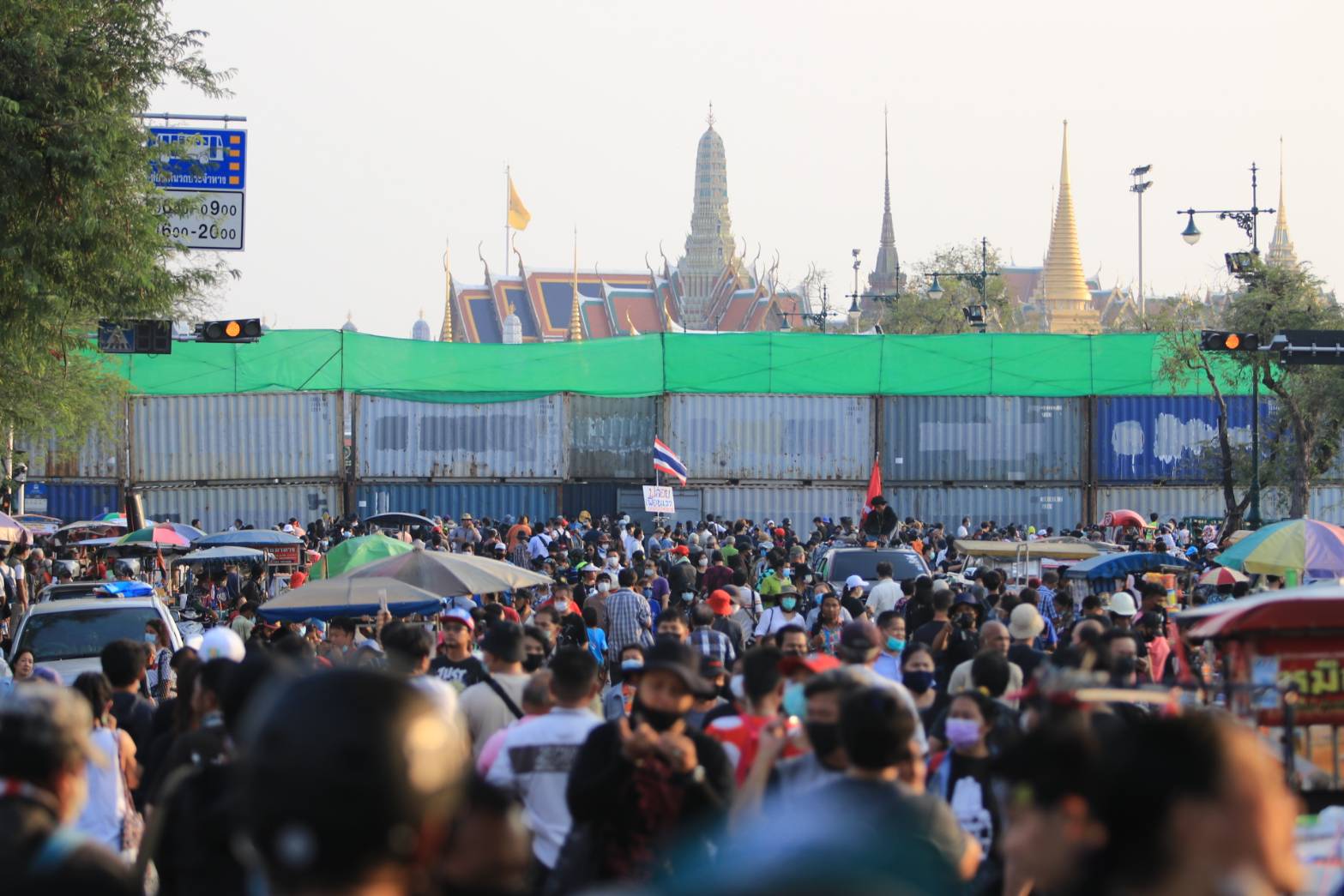 อย่างไรก็ตามเจ้าหน้าที่มีการวางตู้คอนเทนเนอร์ เป็นแนวยาว ตั้งแต่ริมรั้วศาลฎีกา ไปจนถึงมหาวิทยาลัยธรรมศาสตร์ ผ่านกลางสนามหลวง เพื่อป้องกันการเคลื่อนตัวเข้าไปของกลุ่มมวลชนที่มาในวันนี้