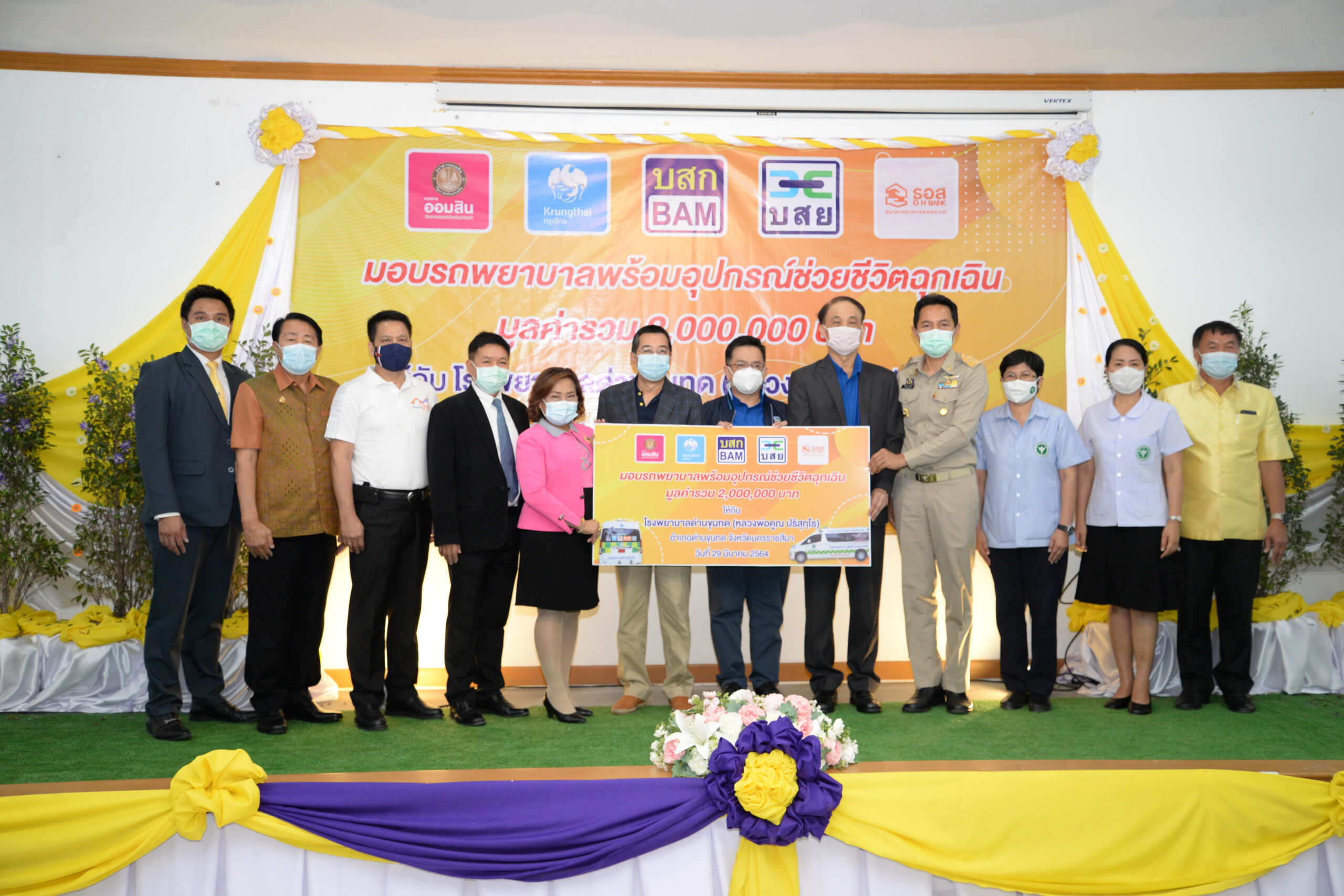 นายบรรยง วิเศษมงคลชัย ประธานคณะกรรมการบริหาร และ นายบัณฑิต อนันตมงคล ประธานเจ้าหน้าที่บริหาร บริษัทบริหารสินทรัพย์ กรุงเทพพาณิชย์ จำกัด (มหาชน) หรือ BAM ร่วมกับบรรษัทประกันสินเชื่ออุตสาหกรรมขนาดย่อม ธนาคารกรุงไทย จำกัด (มหาชน) ธนาคารออมสิน และธนาคารอาคารสงเคราะห์ มอบรถตู้พยาบาลพร้อมอุปกรณ์ช่วยชีวิตฉุกเฉิน ให้กับโรงพยาบาลด่านขุนทด (หลวงพ่อคูณ ปริสุทฺโธ) จังหวัดนครราชสีมา เพื่อช่วยชีวิตผู้ป่วยอุบัติเหตุและฉุกเฉิน นอกจากนี้ BAM ยังได้มอบเงินสนับสนุนซื้อกล้อง CC-TV ให้กับสถานีตำรวจภูธรโนนไทย พร้อมทั้งมอบ COMPUTER ให้กับโรงพยาบาลสีคิ้ว , ที่ว่าการอำเภอด่านขุนทด และสำนักงานสรรพากรพื้นที่ สาขาด่านขุนทด จังหวัดนครราชสีมา เมื่อวันที่ 29 มีนาคม 2564
