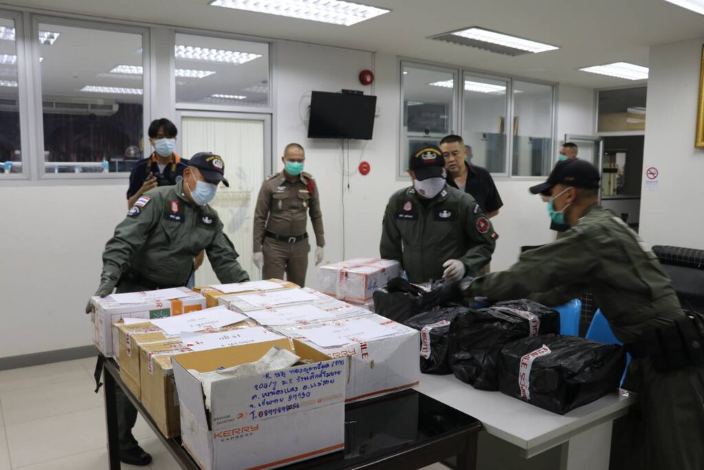 โดยก่อนหน้า ตำรวจ สภ.แม่สาย ทหาร กกล.ผาเมือง ฝ่ายปกครองแม่สาย ได้จับกุมตัว นายมโนกรณ์ สั่งสอน อายุ 29 ปี อยู่บ้านเลขที่ 175 หมู่ 1 ต.เวียงพางคำ อ.แม่สาย อ.แม่สาย คนขับรถกระบะมารับกล่องพัสดุ และ นายทรงศักดิ์ สิริชัยรุ่งเรือง อายุ 31 ปี อยู่บ้านเลขที่ 870 หมู่ 13 ต.แม่สาย อ.เม่สาย จ.เชียงราย คนขับรถตู้ มารับพัสดุต่อจาก นายมโรกรณ์ พร้อมยึดรถตู้โตโยต้า สีขาวทะเบียน ผต.9161 เชียงราย รถยนต์เก๋งมาสด้า ทะเบียน กฉ-2716 ลำพูน เพิ่มอีก 2 คัน