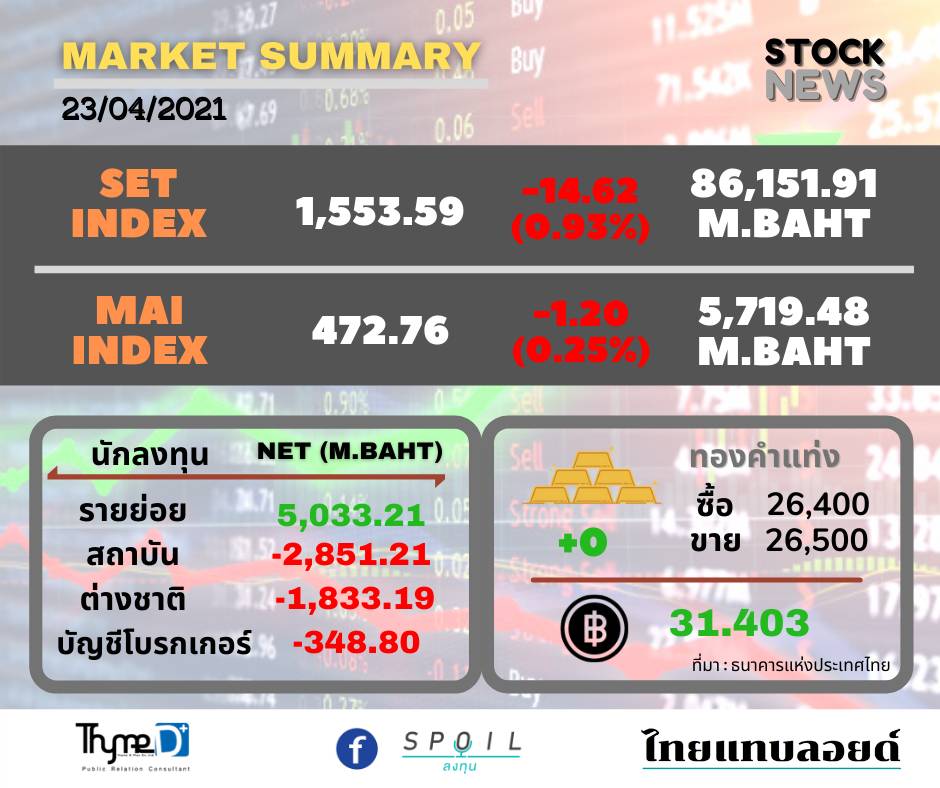 หุ้นไทยปิดร่วง 14.62 จุด แรงฉุดจากโควิดระบาดหนัก ต่างชาติขายสุทธิ 1,833.19 ล้านบาท สัปดาห์หน้ามีลุ้นงบ Q1ดี คาดหุ้นฟื้น
