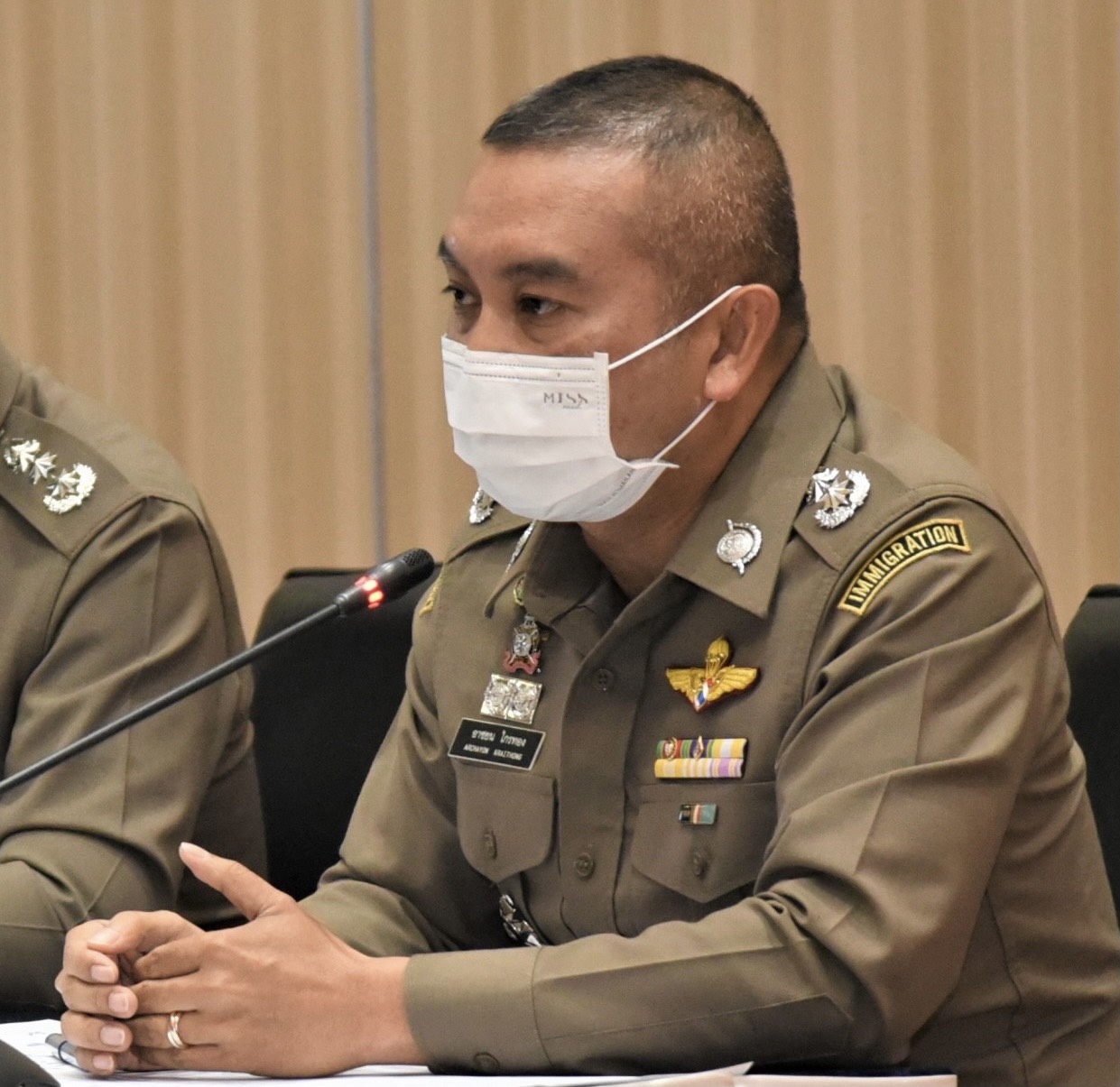 วันที่ 28 เมษายน 2564 ที่สำนักงานตำรวจแห่งชาติ (ตร.) พล.ต.ต.อาชยน ไกรทอง รองผู้บัญชาการสำนักงานตรวจคนเข้าเมือง (รอง ผบช.สตม.) ในฐานะโฆษก ตร. ชี้แจงกรณีผู้ใช้ทวิตเตอร์ทวีตข้อความพาดพิงถึงการทำงานของตำรวจตรวจคนเข้าเมือง จ.นครราชสีมา โดยระบุว่า “ชาวพม่า ต่อพาสปอร์ต ไม่ได้เนื่องจากสถานทูตพม่าปิด พอชาวพม่าที่อาศัยอยู่ในโคราชไปแจ้งว่า หนังสือเดินทางหมดอายุ ตม.โคราช บอกไม่รับรู้ ปรับวันละ 500 แล้วเขาจะต่ออายุยังไง ถ้าปิดไปอีกเดือน ก็ปรับ 15,000 เลยเหรอ” ว่า จากการตรวจสอบพบว่า ผู้ใช้ทวิตเตอร์รายนี้ไม่ได้เป็นผู้รับผลกระทบโดยตรง แต่เป็นเรื่องของภรรยาเพื่อนซึ่งเป็นบุคคลสัญชาติเมียนมา กล่าวคือ ชาวเมียนมารายดังกล่าวเป็นภรรยาของบุคคลผู้มีสัญชาติไทย เมื่อวันที่ 11 พฤศจิกายน 2563 ได้ยื่นคำร้องขออนุญาตอยู่ต่อประเภทบุคคลผู้มีสามีเป็นคนไทย และได้รับการอนุญาตให้อยู่ต่อถึงวันที่ 27 เมษายน 2564 เท่ากับอายุของหนังสือเดินทาง ซึ่งตามระเบียบและกฎหมายที่เกี่ยวข้อง ชาวเมียนมารายนี้จะต้องทำการต่ออายุหนังสือเดินทางให้เรียบร้อย ก่อนยื่นคำร้องขออนุญาตอยู่ต่ออีกครั้ง แต่ปรากฎว่าสถานเอกอัครราชทูตเมียนมาประจำประเทศไทยปิดทำการระหว่างวันที่ 26 เม.ย.-9 พ.ค.2564 ทำให้ไม่สามารถดำเนินการต่ออายุหนังสือเดินทางได้