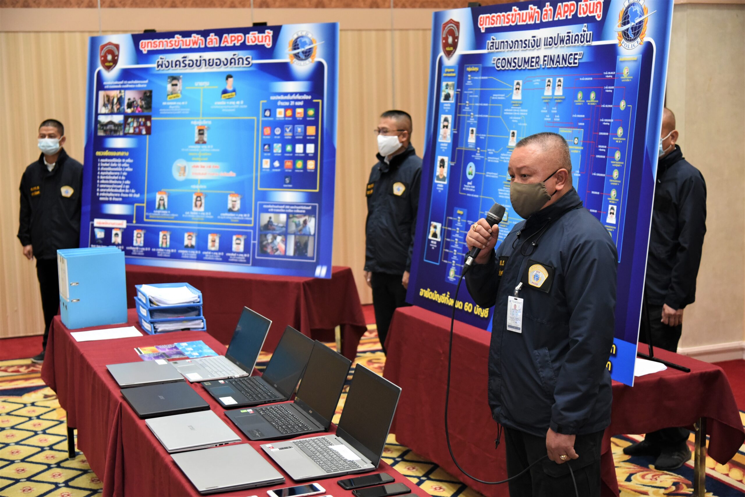 พล.ต.อ.ปิยะ อุทาโย รองผู้บัญชาการตำรวจแห่งชาติ (รอง ผบ.ตร.) กล่าวว่า มีแอพพลิเคชั่น “Consumer Finance” และ “Mini Loan” ดำเนินงานโดยบริษัท ไทย วาลี จำกัด มีการประกอบธุรกิจให้กู้ยืมเงินโดยผิดกฎหมายเรียกดอกเบี้ยเกินกว่าอัตราที่กฎหมายกำหนด และมีการทวงหนี้ผิดกฎหมาย ได้ย้ายที่อยู่เพื่อหลบหนีการจับกุมมาหลายครั้ง เจ้าหน้าที่จึงขอหมายค้นเข้าตรวจค้น 2 แห่ง คือม.19 ต.รอบเวียง อ.เมืองเชียงราย จ.เชียงราย และบนดอยแม่สลอง ต.แม่สลองใน อ.แม่ฟ้าหลวง จ.เชียงราย สามารถจับกุมผู้ต้องหาได้ 10 คน พร้อมของกลางดังกล่าว ขณะนี้ได้อายัดบัญชีที่เกี่ยวข้องทั้งหมด 60 บัญชีพบยอดเงินหมุนเวียนในบัญชีกว่า 200 ล้านบาท และสามารถสืบสวนจนทราบรายชื่อพนักงานทวงหนี้ WORK FROM HOME หมดทุกคนแล้ว อยู่ระหว่างขออนุมัติศาลออกหมายจับผู้เกี่ยวข้องต่อไป ศูนย์ปราบปรามหนี้นอกระบบฯ จะรวบรวมพยานหลักฐานทุกชนิดที่เกี่ยวข้องและติดตามผู้เสียหายมาสอบปากคำเพิ่มเติม ตรวจสอบเส้นทางการเงิน ตรวจสอบของกลางที่ตรวจยึดได้ และขยายผลดำเนินคดีกับนายทุนและผู้เกี่ยวข้องทุกราย ขอเตือนไปยังบุคคลบางกลุ่มที่ยังมีพฤติการณ์ที่ชอบเอารัดเอาเปรียบชาวบ้านประกอบกิจการหรือมีพฤติกรรมเป็นนายทุนปล่อยเงินกู้นอกระบบคิดดอกเบี้ยโหด ทำร้ายร่างกายข่มขู่คุกคามชาวบ้านให้หยุดการกระทำเสีย ตำรวจจะเอาจริงแบบถอนรากถอนโคนดำเนินคดีทุกข้อหาความผิดอย่างเฉียบขาด และไม่ยอมให้มีการเอาเปรียบซ้ำเติมประชาชนเป็นอันขาด