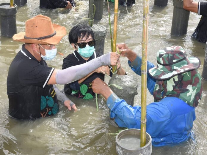 กรุงเทพมหานคร โดยกลุ่มเขตกรุงเทพใต้ ประกอบด้วย เขตสาทร เขตคลองเตย เขตบางคอแหลม เขตปทุมวัน เขตบางรัก เขตยานนาวา เขตวัฒนา เขตบางนา เขตพระโขนง และเขตสวนหลวง จัดกิจกรรมปลูกต้นกล้าโกงกางในท่อซีเมนต์ จำนวน 500 ท่อ รวมทั้งสิ้น 1,500 ต้น โดยใช้วิธีการปักท่อซีเมนต์ลงไปในแปลงปลูกที่ได้กำหนดไว้ จากนั้นนำดินโคลนใส่ลงไปในท่อซีเมนต์ แล้วนำต้นกล้าโกงกางปลูกลงไปในท่อซีเมนต์ เพื่อเป็นการเลี้ยงต้นกล้าโกงกางให้เจริญเติบโตแข็งแรง และปลอดภัยจากคลื่นทะเลที่ซัดเข้ามา รวมทั้งเป็นการเพิ่มจำนวนต้นโกงกาง เพิ่มพื้นที่ป่าชายเลน ปัองกันการกัดเซาะชายฝั่งทะเลบางขุนเทียน ร่วมกันฟื้นฟูป่าชายเลนให้คืนสู่สภาพเดิม ที่มีความสมดุลของระบบนิเวศ เป็นแหล่งอาหารให้แก่สัตว์ที่อาศัยอยู่ตามธรรมชาติ เป็นแหล่งอนุบาลตัวอ่อนของสัตว์หลากหลายชนิด ตลอดจนเป็นแหล่งศึกษาและเรียนรู้ธรรมชาติเชิงนิเวศที่สำคัญของกรุงเทพมหานคร