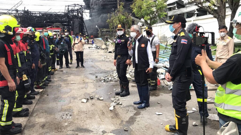 วันที่ 5 กรกฎาคม 2564 พล.ต.อ.อัศวิน ขวัญเมือง ผู้ว่าราชการกรุงเทพมหานคร เปิดเผยภายหลังการประชุมคณะผู้บริหารกรุงเทพมหานคร ครั้งที่ 11/2564 กรณีเหตุระเบิดและไฟไหม้ภายในโรงงานผลิตเม็ดโฟมพลาสติก บริษัท หมิงตี้ เคมีคอล จำกัด ในซอยกิ่งแก้ว 21 หมู่ 15 ต.บางพลีใหญ่ อ.บางพลี จ.สมุทรปราการ เมื่อเวลา 03.20 น. ที่ผ่านมา ว่า ที่เกิดเหตุมีพื้นที่ต่อเนื่องกับกรุงเทพมหานคร 2 เขต คือ เขตประเวศ และเขตลาดกระบัง โดยกรมควบคุมมลพิษ ได้ประสานขอสนับสนุนรถดับเพลิงชนิดฉีดโฟมที่จะเข้าไประงับเหตุ จึงมอบหมายให้ ดร.วัลลภ สุวรรณดี ประธานที่ปรึกษาของผู้ว่าราชการกรุงเทพมหานคร เป็นผู้ควบคุมการปฏิบัติงาน ณ จุดเกิดเหตุ ภายในซอยกิ่งแก้ว 21 พร้อมทั้งสั่งการให้สำนักป้องกันและบรรเทาสาธารณภัย จัดกำลังเจ้าหน้าที่ประมาณ 80 นาย พร้อมรถดับเพลิง และอุปกรณ์ดับเพลิงไปถึงที่เกิดเหตุ ประกอบด้วย 1.รถดับเพลิง รถบรรทุกน้ำดับเพลิง (6,000 ลิตร และ 10,000 ลิตร) รถกู้ภัยสารเคมี รถบรรทุกอุปกรณ์เครื่องช่วยหายใจ (SCBA) จำนวน 38 คัน 2.น้ำยาโฟม (ชนิด AFFF) ดับเพลิงสารเคมี 321 ถัง (1 ถัง บรรจุ 20 ลิตร) โดยปฏิบัติงานร่วมกับเจ้าหน้าที่ของกรมป้องกันและบรรเทาสาธารณภัย