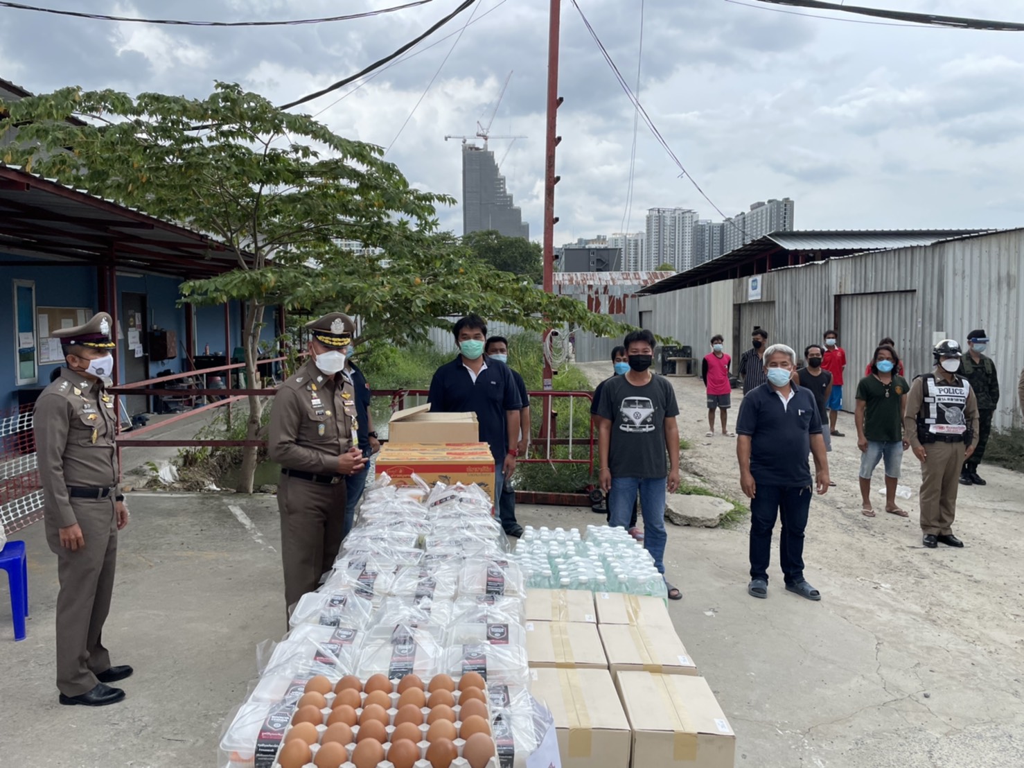 นอกจากการลงพื้นที่ สน.ตลาดพลู แล้ว พล.ต.ท.ภัคพงศ์ พงษ์เภตรา ผู้บัญชาการตำรวจนครบาล (ผบช.น.) ได้ส่งมอบเครื่องอุปโภค บริโภคไปยัง สน. ต่าง ๆ พร้อมกัน อีก 6 สน. ได้แก่ สน.พญาไท, สน.พหลโยธิน, สน.จรเข้น้อย, สน.วังทองหลาง, สน.ปทุมวัน และ สน.บางยี่ขัน เพื่อมอบให้กับข้าราชการตำรวจและคนงานในพื้นที่ รวมคนงานที่ได้รับการช่วยเหลือ จำนวน 2,256 คน และเจ้าหน้าที่ตำรวจในพื้นที่ จำนวน 800 นาย ซึ่งมีรายการสิ่งของแจกจ่าย ได้แก่ น้ำดื่ม 3,000 ขวด, ไข่ไก่ 25,500 ฟอง, ปลากระป๋อง 3,000 กระป๋อง, น้ำตาลทราย 500 กก., สเปร์ยทากันยุง 1,440 ขวด, สบู่ 2,660 ก้อน, เจลแอลกอฮอล์ 2,460 ขวด, หน้ากากอนามัย 20,000 ชิ้น และรองเท้าแตะ 200 คู่