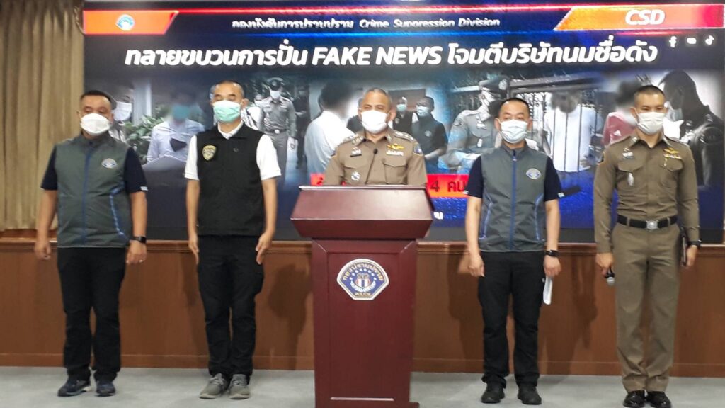 หน้าแรกกระบวนการยุติธรรมตำรวจกองปราบ ทลายขบวนการปั่นเฟคนิวส์​ โจมตีบริษัทนมชื่อดัง​ จับผู้ต้องหา 14 ราย พบ​ชนวน​เหตุมาจากปัญหาธุรกิจ