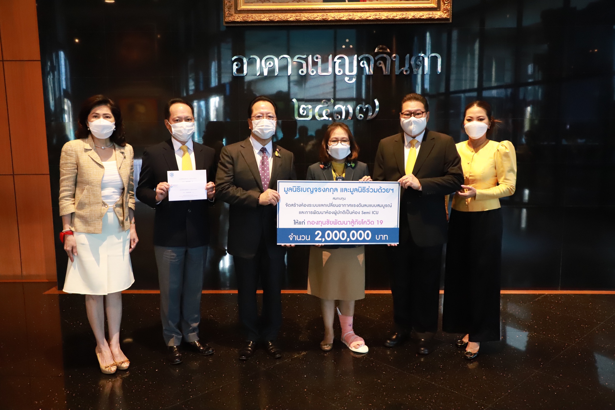 มูลนิธิเบญจรงคกุล-มูลนิธิร่วมด้วยช่วยกัน มอบสมทบทุน 2 ล้านบาทให้ กองทุนชัยพัฒนาสู้ภัยโควิด-19 สร้างห้องแรงดันลบแบบสมบูรณ์และ Semi ICU