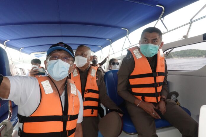 เมื่อเวลา 10.00 น. วันที่ 18 กรกฎาคม 2564 พล.ต.ท.สุรเชษฐ์ หักพาล ที่ปรึกษา (สบ 9), พล.ต.ต.วันไชย เอกพรพิชญ์ รอง ผบช.ภ.8 พร้อม ด้วย นายธเนศ ตันติพิริยะกิจ ประธานสภาอุตสาหกรรมการท่องเที่ยวและกลุ่มผู้ประกอบการพัฒนามเมืองภูเก็ตได้ลงเรือสปีดโบ๊ท ออกตรวจสอบเส้นทางการท่องเที่ยวเชิงประสบการณ์ตั้งแต่เมืองภูเก็ตเลาะไปตามแหลมพรหมเทพ เกาะเฮ ก่อนจะแวะแจกหน้ากากอนามัยให้แก่นักท่องเที่ยวที่พักผ่อนอยู่ที่หาดบานานา บีช เกาะเฮ ซึ่งพบว่ามีนักท่องเที่ยวมาแวะพักผ่อนเป็นจำนวนมากโดยเฉพาะกลุ่มที่เดินทางมาจากประเทศดูไบ ซึ่งจากการสอบถามส่วนใหญ่ตอบรับว่าประทับใจในความเงียบสงบและบริสุทธิ์ของชายหาดในจังหวัดภูเก็ต