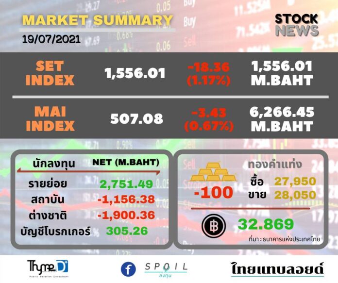 หุ้นไทยปิดร่วง 18.36 จุด อ่อนกว่าภูมิภาคเผชิญความเสี่ยงโควิดเดลต้าระบาดหลายประเทศ