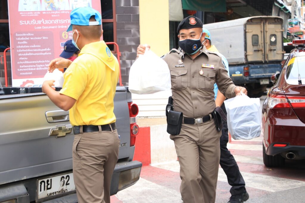 ขณะเดียวกันได้มอบหมายให้ ทางพ.ต.ท.วิษณุ คำโนนม่วง สว.สทล.1 กก.6 บก.ทล. ร่วมกับ จิตอาสา 904 จิตอาสาตำรวจนครราชสีมา ชมรมผู้ประกอบการร้านอาหารปากช่อง ชมรมฮักเขาใหญ่ สมาคมท่องเที่ยวเขาใหญ่ และเจ้าหน้าที่กองสาธารณสุข เทศบาลเมืองปากช่องร่วมกันระดมจิตอาสา ช่วยกันทำอาหารกล่อง โดยมีเมนูหลักอย่างอาหารขึ้นชื่อ คือ ผัดหมีโคราช และกะเพราหมูสับ เพื่อนำไปแจกจ่ายให้กับประชาชนกลุ่มเสี่ยงที่ถูกกักตัว จากการแพร่ระบาดของเชื้อไวรัสโควิด-19 ที่มียอดผู้ติดเชื้อเป็นจำนวนมาก ภายในเขตชุมชนตลาดเทศบาลเมืองปากช่อง โดยมีมาตรการป้องกันการแพร่ระบาดของเชื้อไวรัสโควิด-19 อย่างเข้มงวด และถูกหลักอนามัย