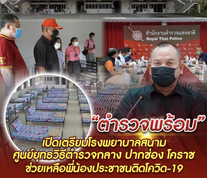 พล.ต.ต.ศักดิ์ระพี เพรียวพานิช ผู้บังคับการศูนย์ฝึกยุทธวิธีตำรวจกลาง เปิดเผยว่า ศูนย์ฝึกยุทธวิธีตำรวจกลาง สำนักงานตำรวจแห่งชาติ มีที่ตั้งอยู่ในพื้นที่อำเภอปากช่อง ทราบว่า สถานการณ์การแพร่ระบาดของเชื้อไวรัสโควิดในพื้นที่ปากช่องค่อนข้างจะวิกฤติ ตำรวจมีความตั้งใจจะช่วยวิกฤติครั้งนี้ของชาวปากช่อง ยินดีมอบอาคารเรียน 2 อาคาร สามารถบรรจุคนได้ประมาณ 160 คน เพื่อให้เป็นโรงพยาบาลสนาม