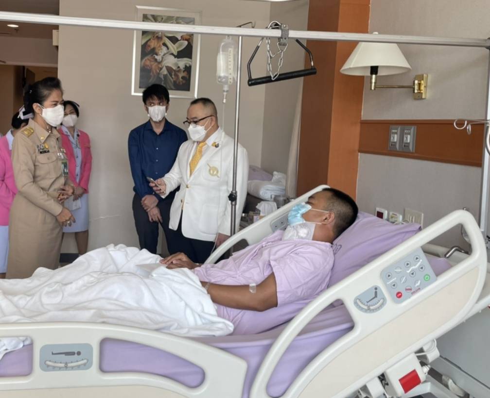 รองโฆษก ตร. เปิดเผยว่า พล.ต.อ.สุวัฒน์ แจ้งยอดสุข ผู้บัญชาการตำรวจแห่งชาติ (ผบ.ตร.ป ได้มอบหมายให้ พล.ต.อ.ดำรงศักดิ์ กิตติประภัสร์ รองผู้บัญชาการตำรวจแห่งชาติ (รอง ผบ.ตร.) พร้อมด้วย พล.ต.ท.โสภณรัชต์ สิงหจารุ นายแพทย์ใหญ่ โรงพยาบาลตำรวจ ตรวจเยี่ยมและให้กำลังใจแก่ข้าราชการตำรวจที่ได้รับบาดเจ็บจากเหตุการณ์ดังกล่าวทั้ง 2 นาย ซึ่งยังพักรักษาตัวอยู่ ณ ชั้น 11 อาคารภูมิพลราชานุสรณ์ 88 พรรษา โรงพยาบาลตำรวจ