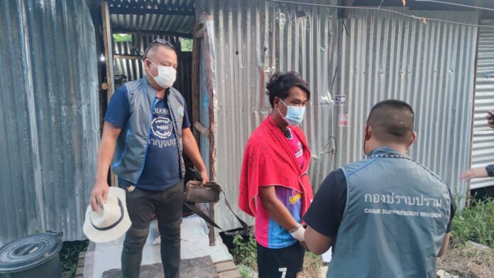 เมื่อวันที่ 10 ส.ค. ที่ กองปราบปราม พล.ต.ต.สุวัฒน์ แสงนุ่ม ผบก.ป.สั่งการ พ.ต.อ.วิระชาญ ขุนไชยแก้ว ผกก 5 บก.ป.พ.ต.ท.หัตถพล ทองคำ สว.กก.5 บก.ป.นำกำลังจับกุม นายบัญชา หรือนุ้ย ชื่นสุวรรณ อายุ 35 ปี ตามหมายจับศาลจังหวัดทองผาภูมิ ที่ จ.55/2564 ลง 29 ก.ค.64 ข้อหา “ร่วมกันช่วยเหลือซ่อนเร้น หรือช่วยด้วยประการใดๆ เพื่อให้บุคคลต่างด้าวหลบหนีเข้าเมืองโดยผิดกฎหมาย ให้พ้นจากการถูกจับกุมของเจ้าพนักงาน, สนับสนุนหรือช่วยเหลือ เคลื่อนย้ายแรงงานต่างด้าว โดยฝ่าฝืนกฎหมาย” ได้ที่แคมป์ก่อสร้าง ถ.เลียบคลอง 5 ฝั่งตะวันตก ต.ลาดสวาย อ.ลำลูกลา จ.ปทุมธานี