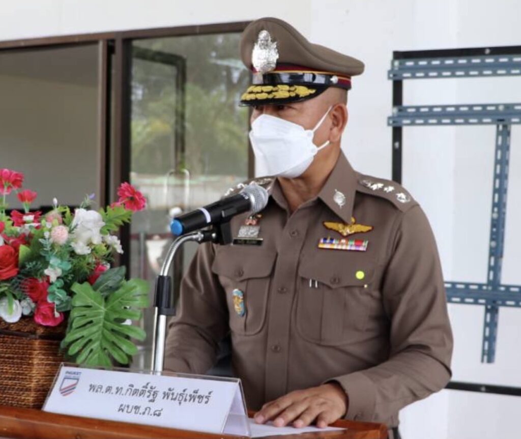 ทั้งนี้ มี พล.ต.ต.ศักย์ศิรา เผือกอ่ำ รองผู้บัญชาการตำรวจภูธรภาค 8 (รอง.ผบช.ภ.8) รักษาราชการแทนตำรวจภูธรจังหวัดภูเก็ต (รรท.ผบก.ภ.จว.ภูเก็ต), รองผู้บังคับการตำรวจภูธรจังหวัดภูเก็บ (รอง ผบก.ภ.จว.ภูเก็ต) และเจ้าหน้าที่ผู้ปฏิบัติที่เกี่ยวข้อง รวม 50 นาย ได้เข้า ร่วมพิธี รับมอบ