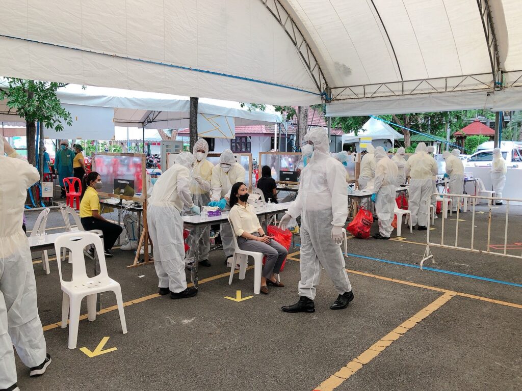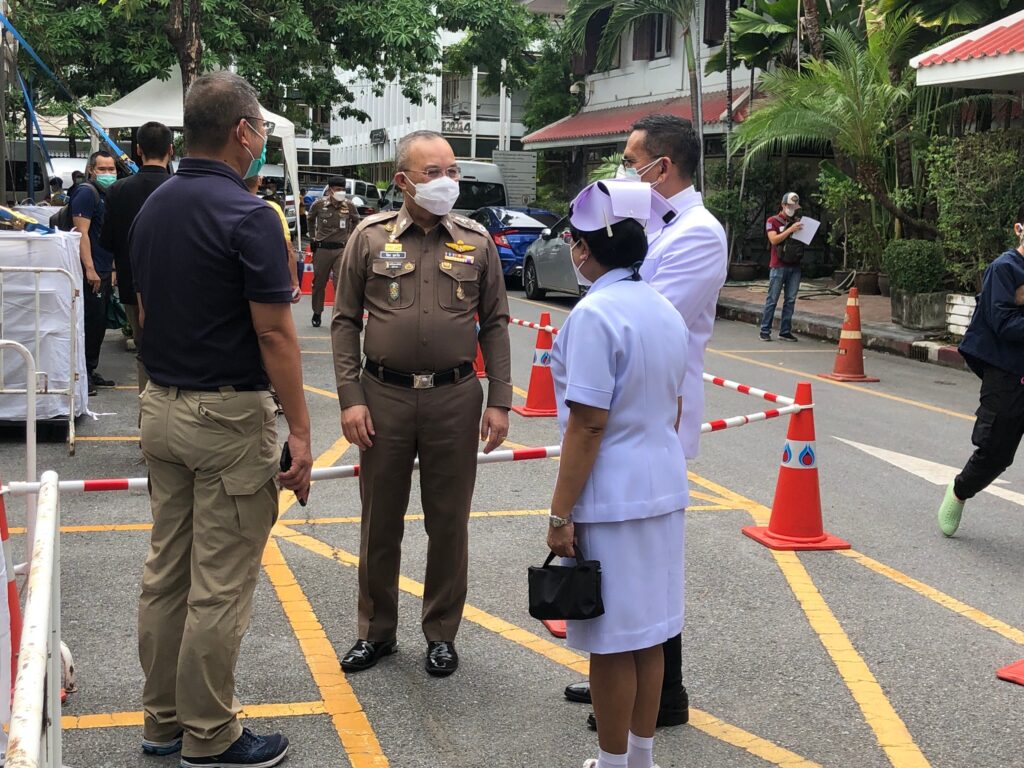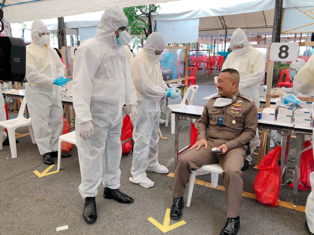 วันที่ 16 สิงหาคม 2564 ที่สำนักงานตำรวจแห่งชาติ พล.ต.อ.สุวัฒน์ แจ้งยอดสุข ผู้บัญชาการตำรวจแห่งชาติ (ผบ.ตร.) ให้ พล.ต.อ.สุชาติ ธีระสวัสดิ์ รองผู้บัญชาการตำรวจแห่งชาติ (รอง ผบ.ตร.) พล.ต.อ.ปิยะ อุทาโย รองผู้บัญชาการตำรวจแห่งชาติ (รอง ผบ.ตร.) พล.ต.อ.สุรพล อยู่นุช ที่ปรึกษาพิเศษ ตร. เป็นตัวแทนตรวจเยี่ยมให้กำลังใจเจ้าหน้าที่ตำรวจผู้ปฏิบัติงาน บุคลากรทางการแพทย์ รพ.ตร. อาสาสมัคร ตร. และผู้เข้ารับการตรวจในโครงการตรวจคัดกรองเชิงรุกโรคติดเชื้อไวรัสโคโรนา2019 (COVID 19) สำหรับข้าราชการตำรวจและครอบครัว ตลอดจนประชาชนตามนโยบายของ พล.อ.ประยุทธ์ จันทร์โอชา นายกรัฐมนตรี โดยมียอดผู้รับการตรวจที่ สำนักงานตำรวจแห่งชาติ ทั้งหมด 1,534 คน แบ่งเป็นวันจันทร์ที่ 16 สิงหาคม 2564 จำนวน 800 คน, วันอังคารที่ 17 สิงหาคม 2564 จำนวน 734 คน วันนี้ หน่วยงาน ใน สำนักงานตำรวจแห่งชาติ ตรวจแล้ว จำนวน 908 คน – พบเชื้อ 6 คน แบ่งเป็นข้าราชการตำรวจ 2 คน ครอบครัวตำรวจ จำนวน 3 คน ประชาชน จำนวน 1 คน