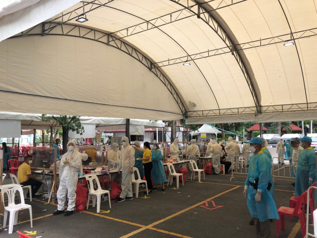 ขณะที่ นางศิริเพ็ญ ทิพย์ประเสริฐ อาชีพรับจ้าง แสดงความคิดเห็นต่อการตรวจหาเชื้อโควิด 19 เชิงรุกว่า เจ้าหน้าที่ใช้วาจาสุภาพ ใส่ใจผู้รับการตรวจดี อยากให้มีอีก รู้สึกดีกับโครงการของตำรวจ ที่ใส่ใจเราค่ะ