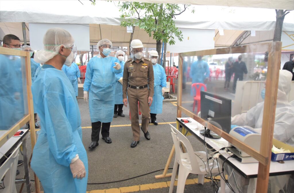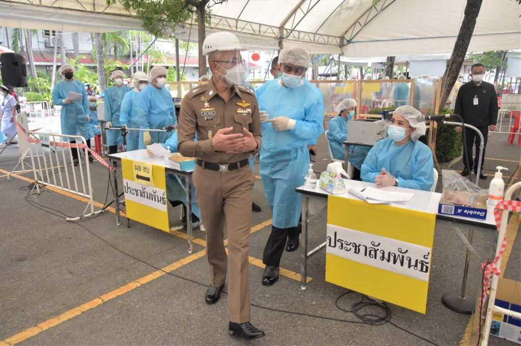 สำหรับบรรยากาศการจุดตรวจคัดกรองที่สำนักงานตำรวจแห่งชาติ ค่อยข้างเป็นระบบและการบริหารจัดการมีขั้นตอนชัดเจน ไม่พบความแออัด โดยเจ้าหน้าที่ที่ปฏิบัติค่อยข้างรัดกุมมีการสวมชุดป้องกันPPEและสวมหน้ากากอนามัยตลอดเวลา โดยประชาชนที่มารับบริการใช้บัตรประจำตัวประชาชนเพียงใบเดียวและต้องปฏิบัติตามมาตรการอย่างเคร่งครัด ตั้งแต่ตรวจวัดอุณภูมิร่างกาย ลงทะเบียนและการตรวจด้วยชุด ATK ระหว่างรอฟังผล 30 นาที ต้องนั่งอยู่ในจุดที่กำหนดมีการเว้นระยะห่างจนกระทั่งทราบผล โดยผู้ที่มีผลเป็นลบเจ้าหน้าที่จะอนุญาตให้กลับได้ ส่วนผู้ผลเป็นบวก เจ้าหน้าที่จะแยกออกไปเพื่อทำการตรวจแบบRT PCR อีกครั้งซึ่งจะทราบผลใน 1-2 วัน หากผลยืนยันติดเชื้อก็จะเข้าสู่ขั้นตอนการรักษาต่อไป