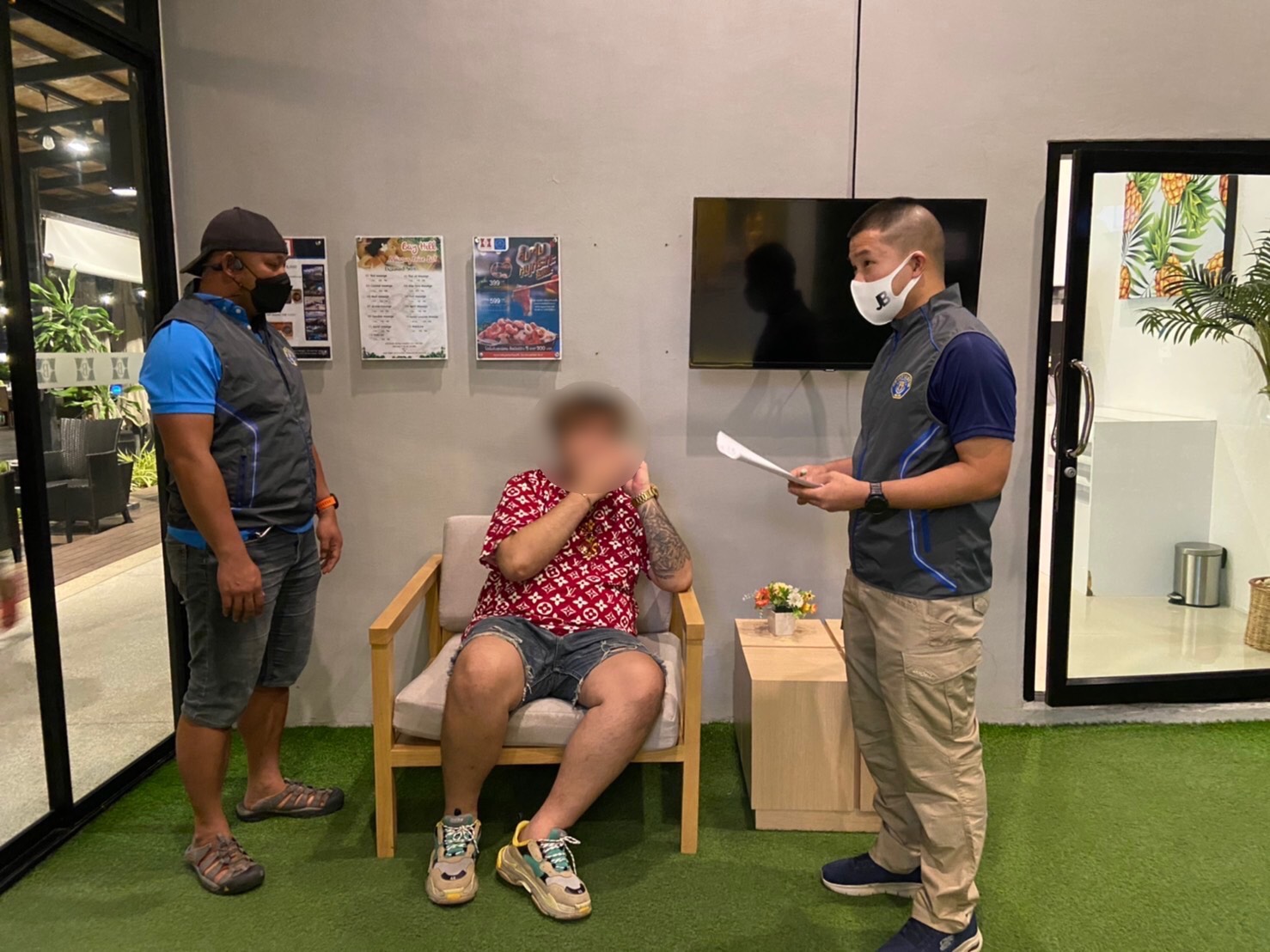 เจ้าหน้าที่ตำรวจชุดจับกุม นำโดย พ.ต.ต.พิทยา ธนาวุฒิ สว.กก.5 บก.ป. พร้อมกำลังข้าราชการตำรวจ กองกำกับการ 5 กองบังคับการปราบปราม