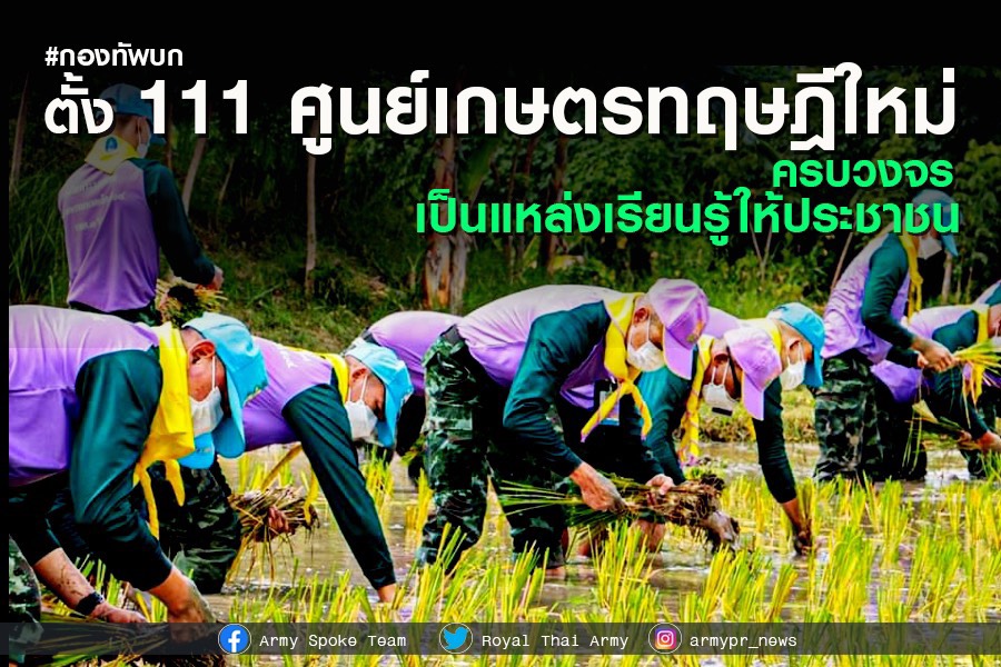ทบ. ตั้ง 111 ศูนย์เกษตรทฤษฎีใหม่ครบวงจรฯ เดินต่อภารกิจช่วยประชาชนช่วงโควิด-19 ประสานสกัดกั้นยาเสพติดยึดยาบ้ากว่า 6 ล้านเม็ด