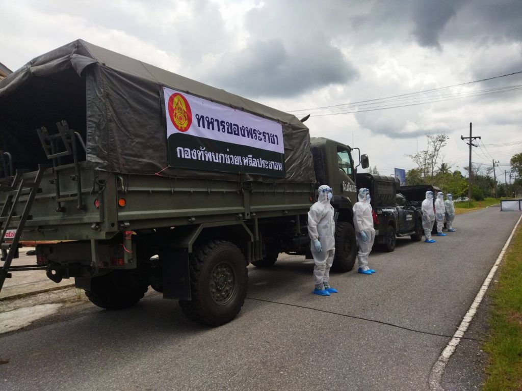 นอกจากนี้จุดบริการประชาชนของกองทัพบก 70 จุด ในพื้นที่ควบคุมสูงสุดและเข้มงวด บรรเทาความเดือดร้อนของประชาชนและดำเนินการให้ความช่วยเหลือโดยเร็วที่สุดได้ให้การบริการประชาชนไปแล้ว 109,469 คน, การจัดตั้งโรงพยาบาลสนามของกองทัพบกสำหรับกำลังพลและครอบครัวในพื้นที่ส่วนกลาง และกองทัพภาค จำนวนเตียงรวม 2,072 เตียง (ส่วนกลาง 482 เตียง, กองทัพภาค 1,570 เตียง), การส่งกลับผู้ป่วยโรคโควิด-19 ที่ไม่มีอาการ หรือมีอาการเล็กน้อย ในพื้นที่กรุงเทพมหานครและปริมณฑล กลับไปรับการรักษายังภูมิลำเนาของตนเอง เพื่อลดความคับคั่งของระบบสาธารณสุขในส่วนกลางรวม 587 ราย, การจัดรถครัวสนามแจกจ่ายอาหารให้กับประชาชนที่ได้รับผลกระทบจากสถานการณ์การแพร่ระบาดของโรคโควิด-19 ตั้งแต่1 พ.ค. ถึงปัจจุบัน แจกจ่ายอาหารกล่องไปแล้ว 390,418 กล่อง, จัดชุดจัดการเคลื่อนย้ายศพ ดำเนินการเคลื่อนย้ายศพผู้เสียชีวิตจากโรคโควิด-19 ทั้งภายในที่พักของตนเอง โรงพยาบาลและพื้นที่สาธารณะรวม 167 ราย, ฉีดพ่นทำความสะอาดล้างสิ่งปนเปื้อนขจัดการแพร่ระบาดฯ ในพื้นที่ที่มีความเสี่ยง 493 พื้นที่ และสถานศึกษาจำนวน 284 แห่ง, การจำหน่ายผลผลิตจาก “โครงการทหารพันธุ์ดี” ในราคาถูก สามารถลดภาระค่าใช้จ่ายในครัวเรือนให้กับกำลังพลและประชาชนรอบค่ายทหารกว่า 50,000 ครัวเรือน