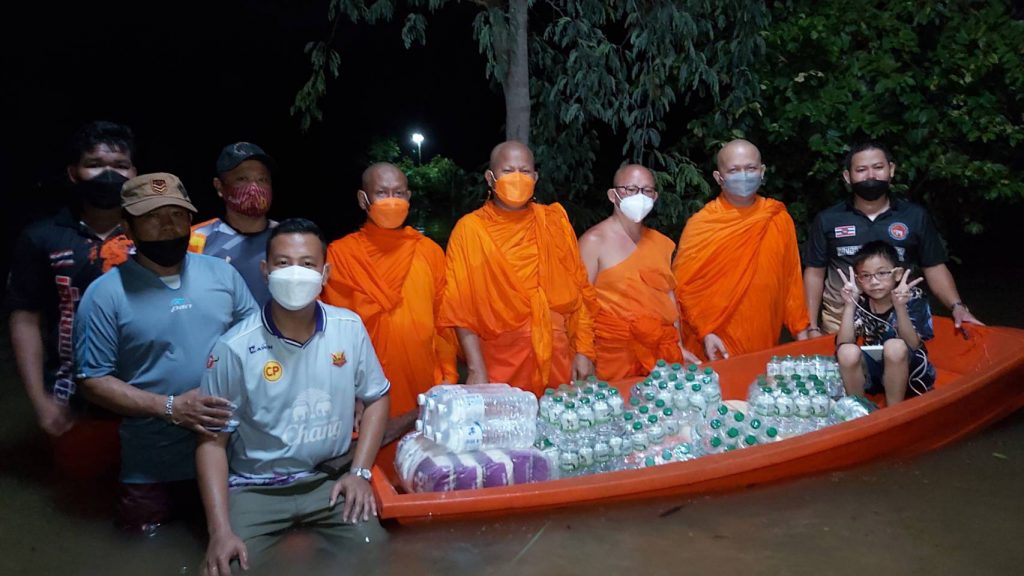 ทางพระสมุห์ปัญยา ปญฺญาวโร เจ้าอาวาสวัดบ้านไร่ พระปลัดวัฒนา สิริสุวัณโณ เจ้าอาวาสวัดพลายชุมพล พระครูปลัดสารัตน์ สุภทฺโท เจ้าอาวาสวัดเตว็ดใน พร้อมด้วยเจ้าหน้าที่ อ.ส.จังหวัดสุโขทัย เจ้าหน้าที่กู้ภัยบางแก้ว เจ้าหน้าที่กู้ภัยเทพนิมิตรศรีสำโรง และเจ้าหน้าที่กู้ภัยข่าวภาพสุโขทัย และกลุ่มรถซิ่ง ร่วมใจกันนำข้าวสารอาหารแห้งและ น้ำดื่ม ขนลงเรือลุยน้ำไปมอบให้กับ ประชาชนที่ประสบภัยน้ำท่วมในพื้นที่อย่างไม่ย่อท้อถึงแม้ว่าในบางจุดจะต้องลงเดินลุยน้ำที่ท่วมสูง ถึงเกือบ 1 เมตร เพื่อที่จะนำ อาหารกล่องจำนวน 400 กล่อง ข้าวสาร70 ถุงและน้ำดื่ม 100 โหล ไปมอบให้แก่ประชาชน เพื่อเป็นการช่วยเหลือในเบื้องต้น โดยหวังให้ทุกคนที่ได้รับความเดือดร้อน ได้มีกำลังใจในช่วงสถานการณ์น้ำที่ท่วมขังในครั้งนี้