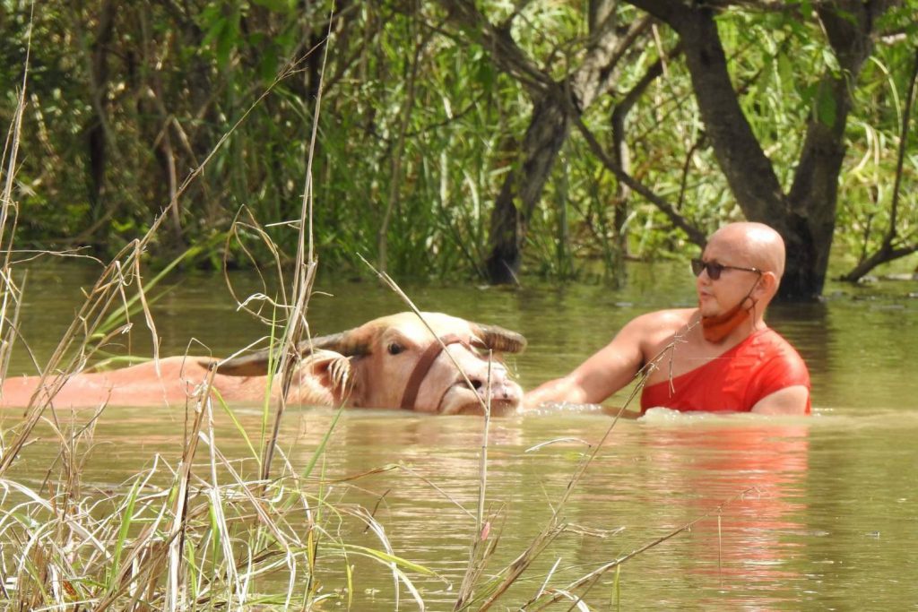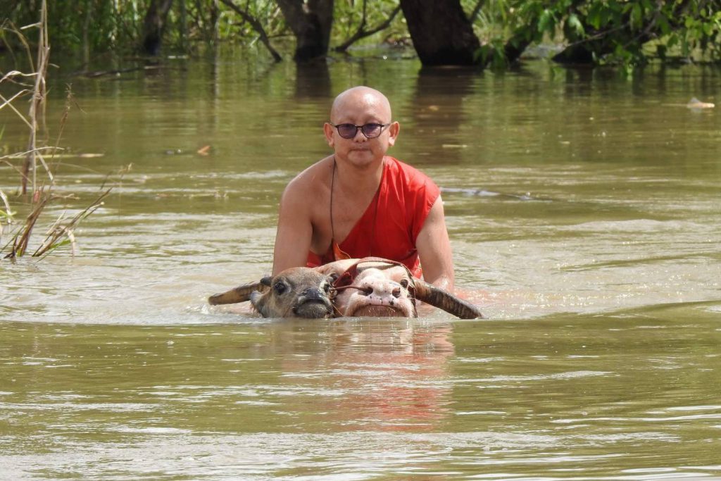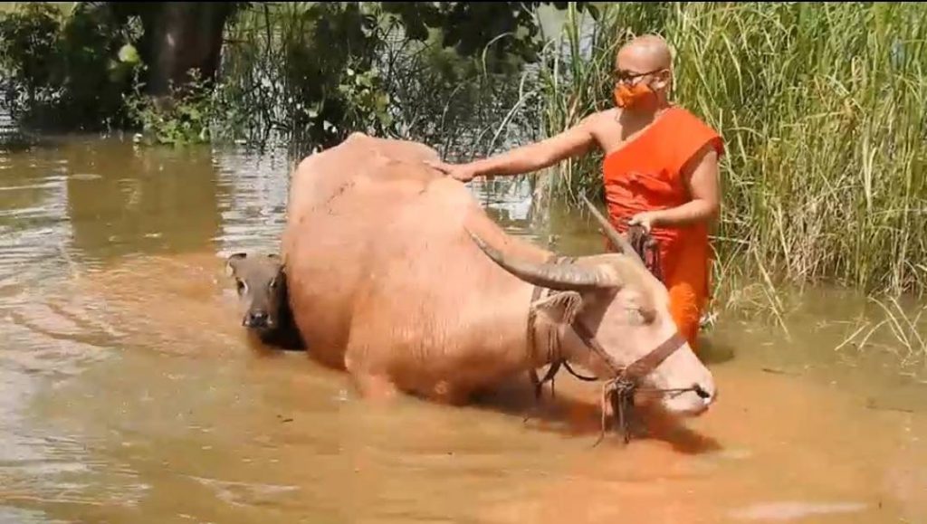 “น้ำท่วม วัดพลายชุมพล รีบย้ายควายเผือกหนีน้ำ”